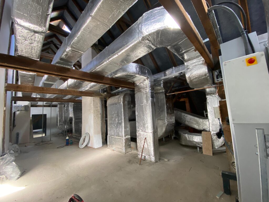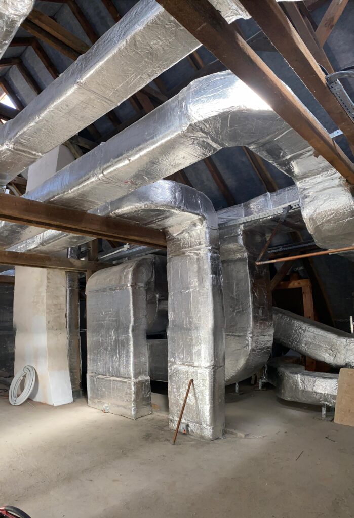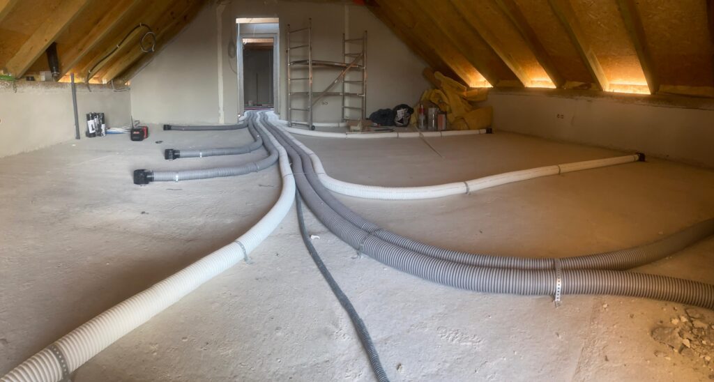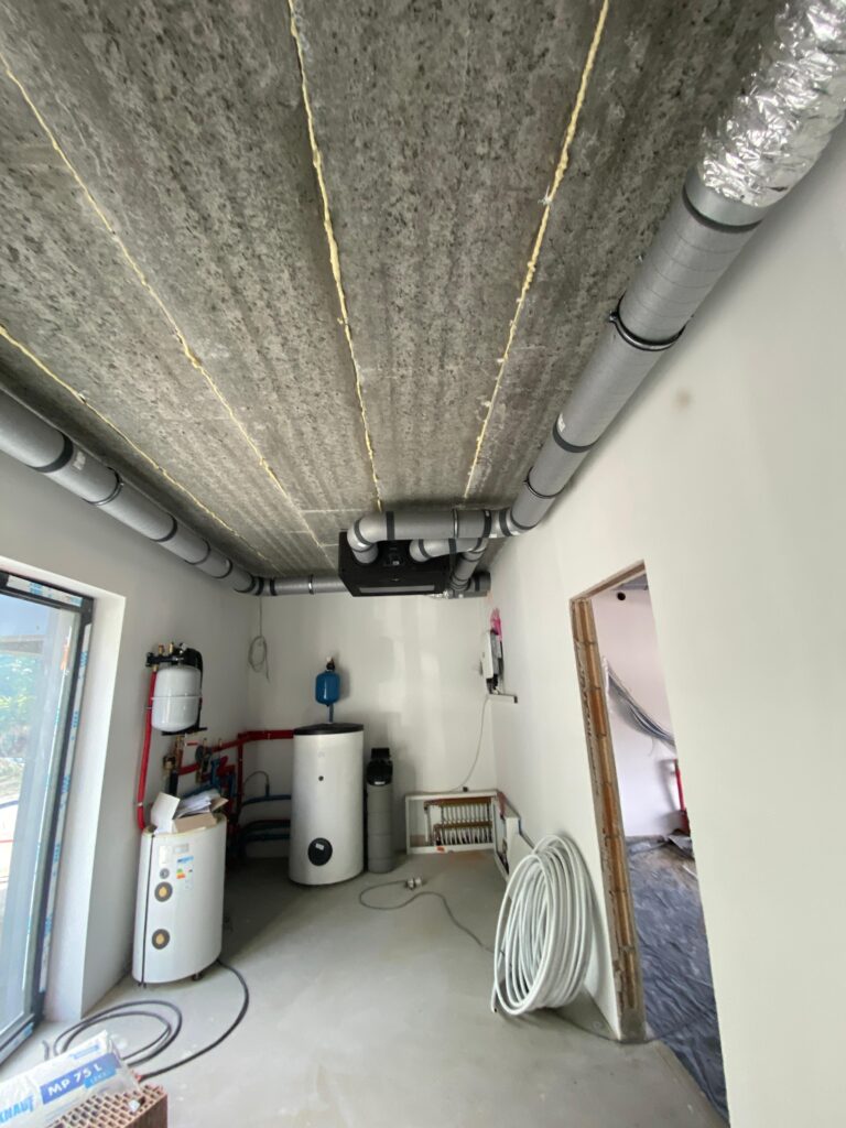 Wykonujemy systemy wentylacji mechanicznej z odzyskiem ciepła (rekuperację), które zapewniają stałą wymianę powietrza bez strat energii i konieczności wietrzenia.