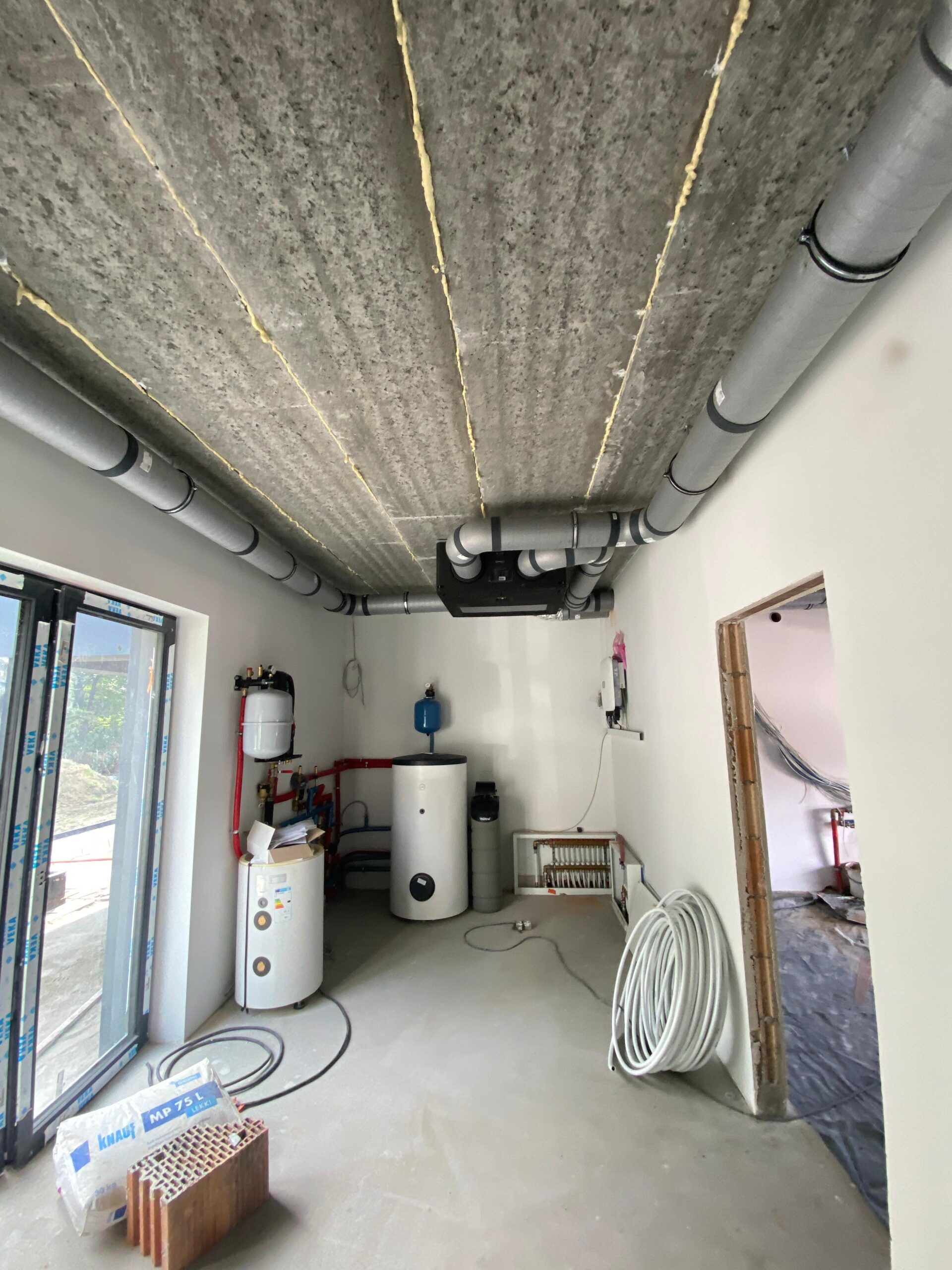 Wykonujemy systemy wentylacji mechanicznej z odzyskiem ciepła (rekuperację), które zapewniają stałą wymianę powietrza bez strat energii i konieczności wietrzenia.